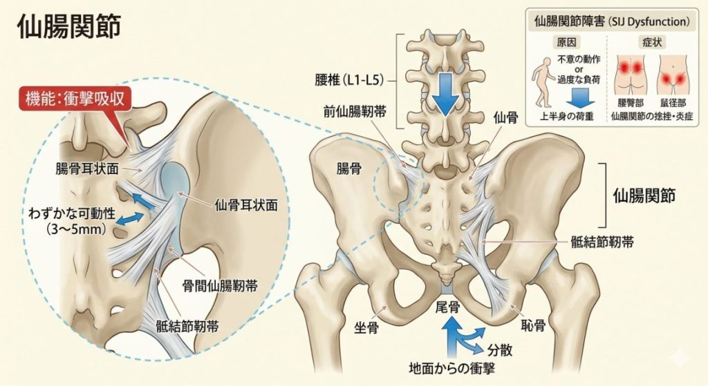 仙骨と骨盤をつないでいるのが「仙腸関節」です。